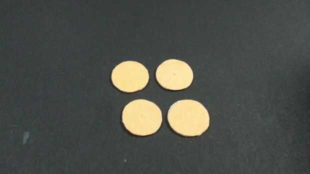 1. de un pedazo de cartón, cortar 4 ruedas de unos 4cm de diámetro.