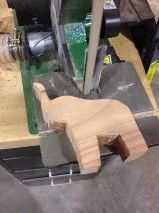 Paso por la demostración de paso que muestra cómo hacer un juguete de madera Andrewsarchus de nuez usando una sierra de contornear. El patrón para el Andrewsarchus es del libro Sierra de las pautas de juguete dinosaurios y criaturas prehistóricas de