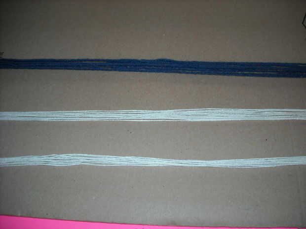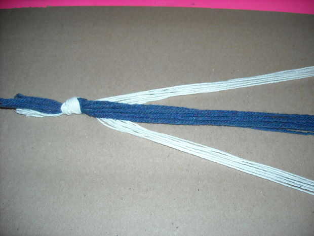 Separar los segmentos en una pila de diez hilos y dos montones y doce cuerdas y atarlos juntos en un extremo con un nudo de mano.