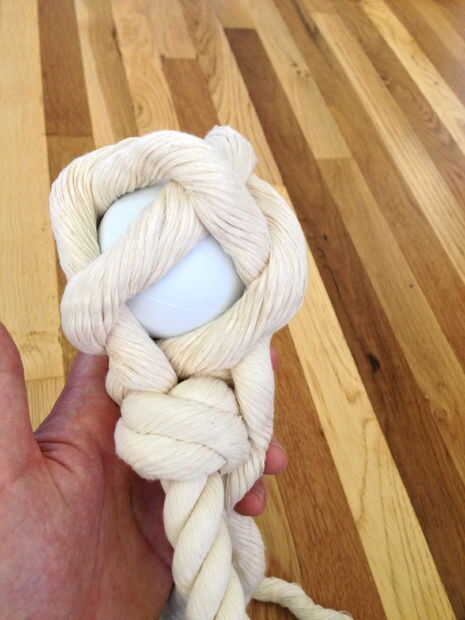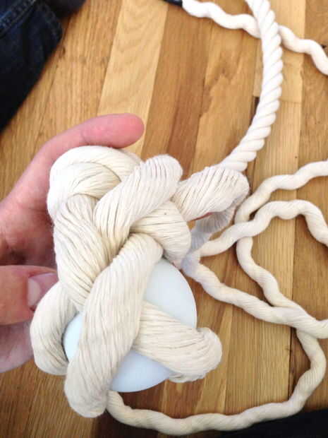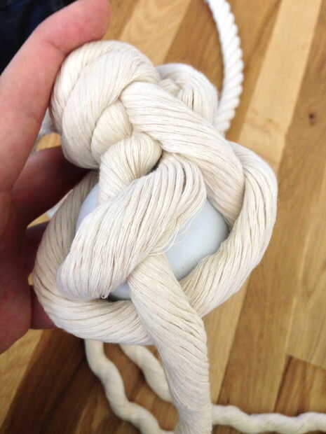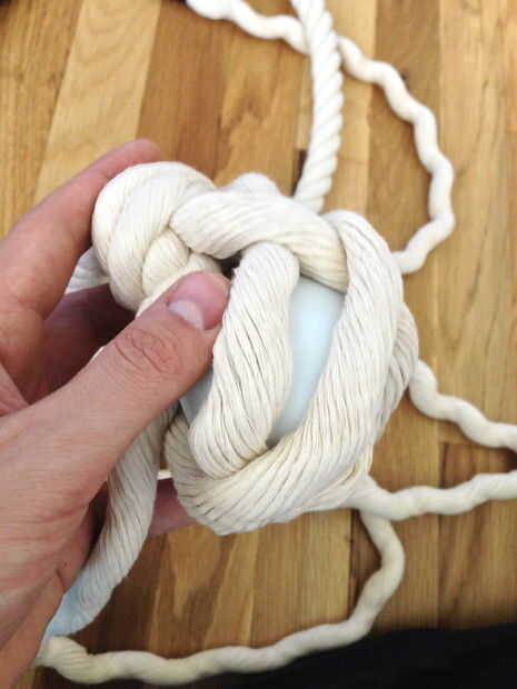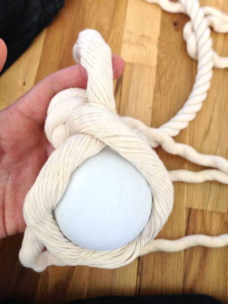 1. lazo alrededor de la bola, entonces venir y bajo el filamento de la misma.