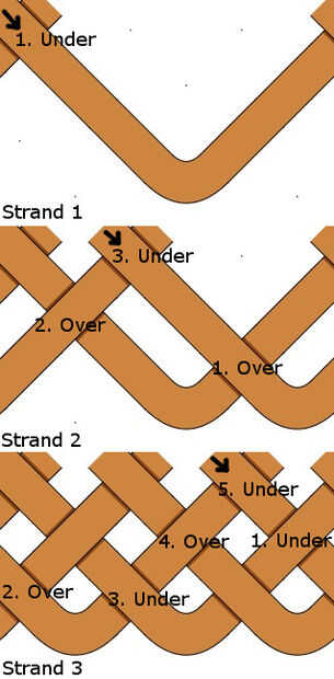 2. luego pasar el primer filamento otra vez cerca de la cima.