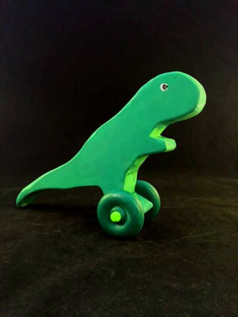 Una vez que han pegado sus ruedas en, tu juguete está completo! Felicitaciones, después de todo lo que trabajo tienes un perfecto trabajo de T-rex juguete! ¡ Disfrute! :)