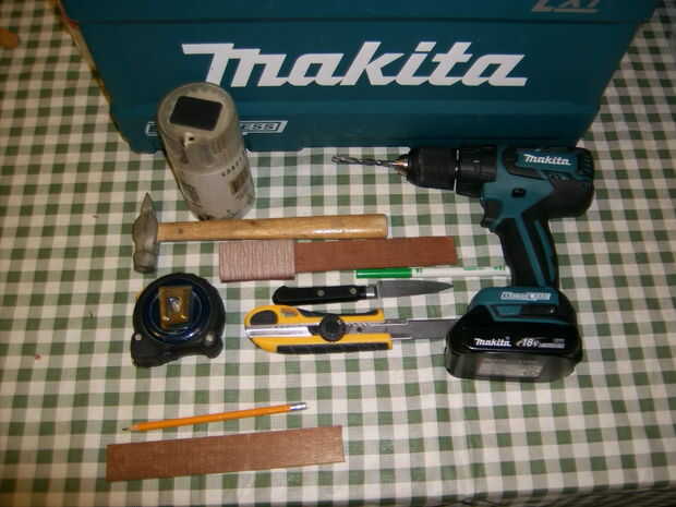 En primer lugar necesita algunas herramientas, un taladro, xacto nife, marcador, cinta de mesureing, regla de cualquier tamaño, 1 15 * 20 * tablón largo cm y un 15 * cm por 10 * tablón mm