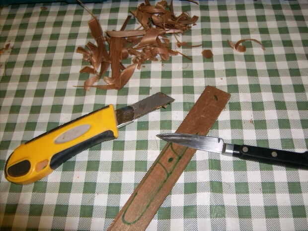 ahora que corta la parte exterior de la ovel, luego talla la ovel por lo que parece una lámina del helicóptero de un helicóptero, usethenife o xacto nife prefiero xacto nife