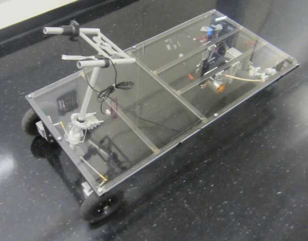 Eli-Kart surgió de un interés mío para crear un simple, confiable, vehículo eléctrico personal que sería práctico fuera de la pista de carreras. Por un motor eléctrico el funcionamiento y todo lo de las baterías, Eli-Kart no añade directamente a la contaminación atmosférica (por lo que no me siento mal uso en interiores). A diferencia de la mayoría de go-karts, tiene sólo tres ruedas: dos en la parte delantera y uno en la espalda. A expensas de la velocidad de giro un poco, Eli-Kart tiene separación de tierra decente y espacio adicional para otro pasajero o carga extra.