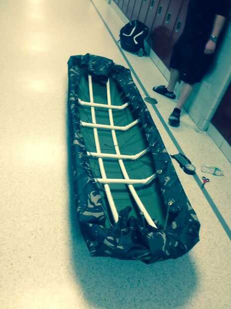 Aceptar la tela vas a querer hacer un lazo para tirar de los aros de refuerzo de dos esquina en cada extremo a los dos ojales en el centro de cada extremo en un lado. Estire ese lazo y armadura bajo las abrazaderas del marco y tire de ellas firmemente para que las aletas no sobresalgan de los extremos del barco. Flop el cojín de elección en el piso de barcos y agarre una pala desde su tienda local de artículos deportivos y tienen un ligero kayak! Si la tela se rompe en cualquier momento todo lo que necesitas hacer es repetir lo hecho en la lona y abrigo del marco! Es un proyecto muy fácil y divertido que no requiere demasiada habilidad y tiene una alta salida de diversión!