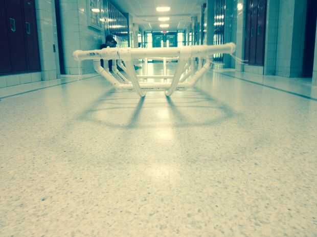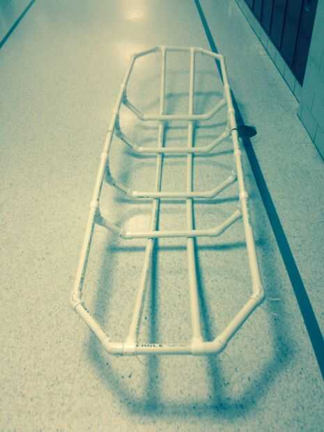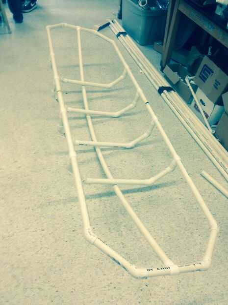 En este punto su marco debe verse como la imagen de arriba, en este punto usted debe asegurar cada tubo PVC a cada conector por perforación y zip empatando que ellos juntos, esta voluntad de aumentan la integridad estructural del chasis.