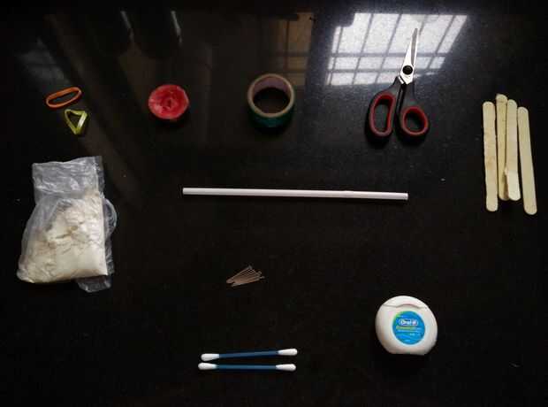 para hacer su propio kit de la emergencia vas a necesitar las cosas arriba. He utilizado (para mi caso) una vieja bolsa de golf no usó mi papá (asegúrate de tener permiso de tus padres a usar primero) y tenía cosas como pegamento, tijeras y papel y o