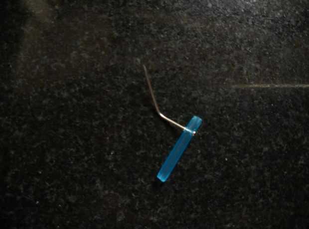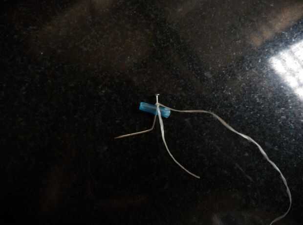 hacer un pequeño orificio en la varilla con un martillo y el clavo y el clavo de la curva en forma de gancho. Entonces haga un nudo doble con nudo dental en la parte superior de la uña y el brote de oído.