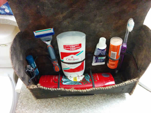 Este kit de afeitado es impermeable, tiene personalizados diseñados "bolsillos" para mantener todos mis artículos de tocador, modificado para requisitos particulares grabados y mano rústica costura. Me costo $80 y 8ish horas, pero tengo fuentes y herramientas para hacer otros proyectos de al menos 4-5. Gracias por tu interés, que les espero guste.