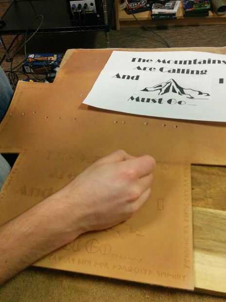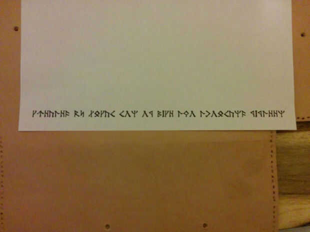 Lo primero que se necesita es un diseño para poner en el cuero. He ido con el tema "Señor de los anillos". No tengo los derechos de estas imágenes, no estoy vendiendo este bolso. He utilizado un conjunto de runas enano creado en: http://derhobbit-film.de/rune_generator.shtml#rune para todos los internos de la bolsa. También usé una imagen de la montaña solitaria de la tapa de "El Hobbit" y una cita de John Muir. Estos donde todo impreso hacia fuera en diferentes pedazos de papel.
