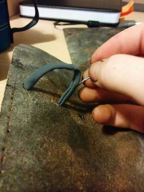 Así que antes hemos añadido ojales para ayudar a organizar el kit de afeitado. Ahora vamos a añadir el cordón elástico para sostener todas nuestras cosas en su lugar.