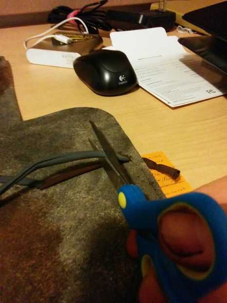 Inicio haga un nudo (lo suficientemente grande que no pasan por los ojales) en un extremo de la primera pieza de cordón. Entonces a partir de que lado te elija, a partir de la presión trasera el cordón a través del orificio de la izquierda/derecha. Páselo a través hasta el nudo las capturas en el ojete y luego ir aunque la anilla siguiente, esta vez va de dentro a fuera. Probablemente puede hacerlo con los dedos, pero si empiezas a tener problemas use la aguja para empujar los cordones por el ojete. Mantenga este patrón va hasta llegar al último ojal, al llegar, dejar unos 3cm asomando y cortar el resto.