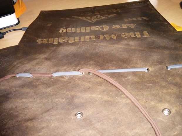 Ahora usando ya sea el mismo o en mi caso, diferentes colores de cordones. Vamos a hacer lo mismo pero al revés y revés. Ahora debe tener cada segundo ranura cubierta por un pedazo de cordón y a la inversa en el exterior. Otra vez un nudo en un extremo de la cuerda, pero este comienzo de tiempo en el mismo agujero como antes, pero van desde el interior hacia el exterior. Repita el mismo patrón que antes de rellenar las ranuras restantes.