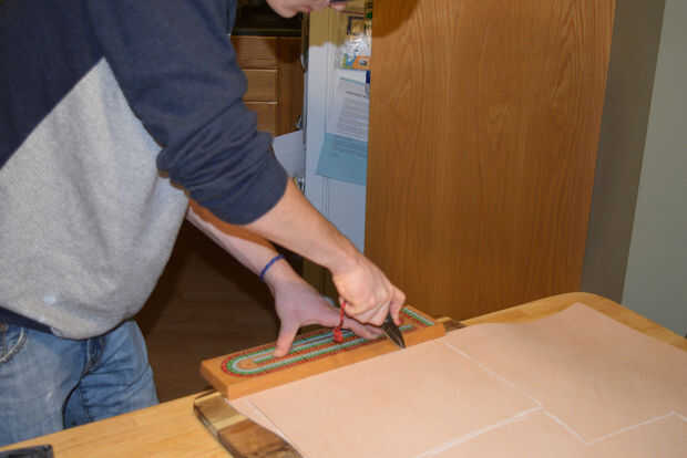 Poner el cuero en el tablero de corte y asegúrese de que toda la longitud del corte que usted necesita hacer es sobre la tabla para cortar. Esto es más difícil de lo que suena:)
