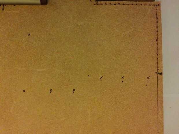 En este punto me di cuenta de cómo al azar miraban estos puntos, así que pasé de todo en una línea recta. Los puntos marcados con una X son los que será cortado en el paso siguiente. De esta manera la bolsa terminada tendrá un aspecto más agradable.