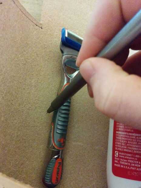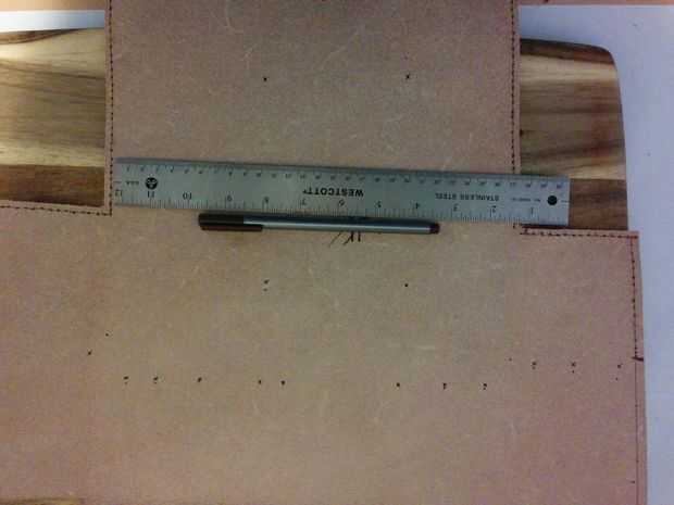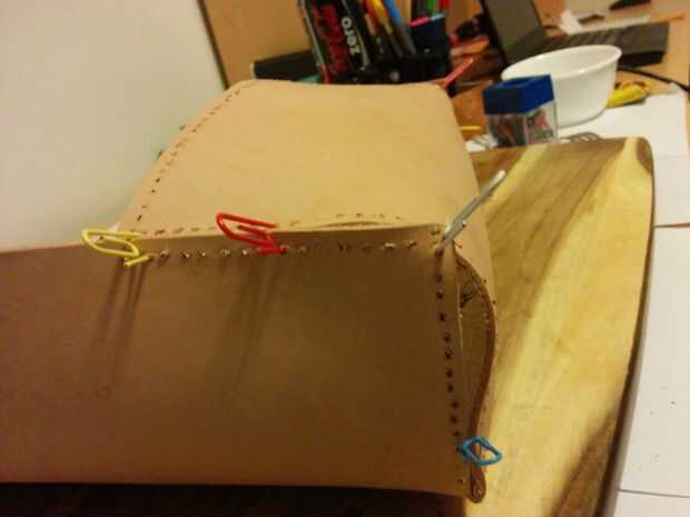 Una vez que todos los agujeros de costuras han sido perforados, nosotros podemos se burlan del kit de afeitado.
