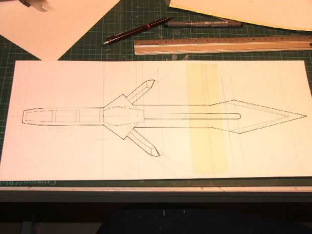 Esta daga se hará de la tarjeta laminada para formar la hoja y el mango.