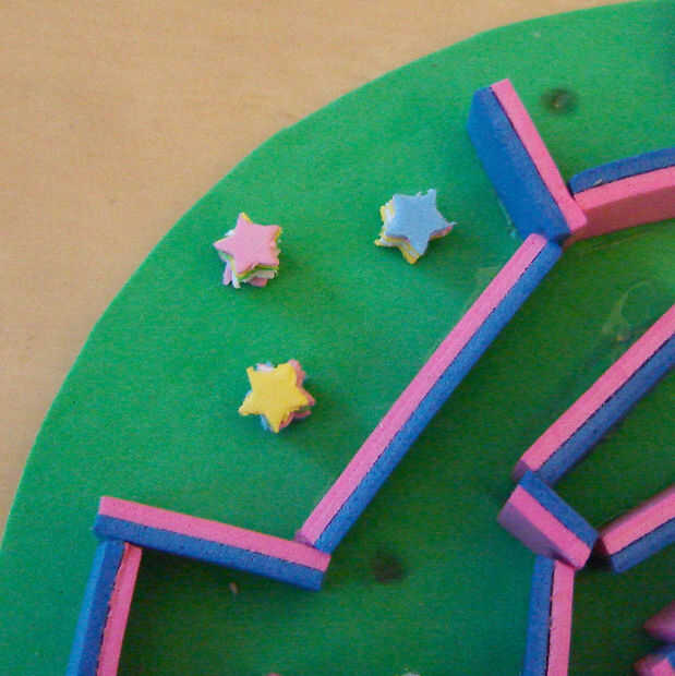 he añadido algunos otros obstáculos en el laberinto como topes.  Estos se construyen usando una nave de golpe a golpe formas de varios colores de espuma del arte, les pegar y luego los pegado al piso del laberinto.