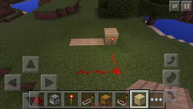 colocar cualquier bloque [elegí abedul] y una antorcha de redstone en él. entonces lugar la redstone así