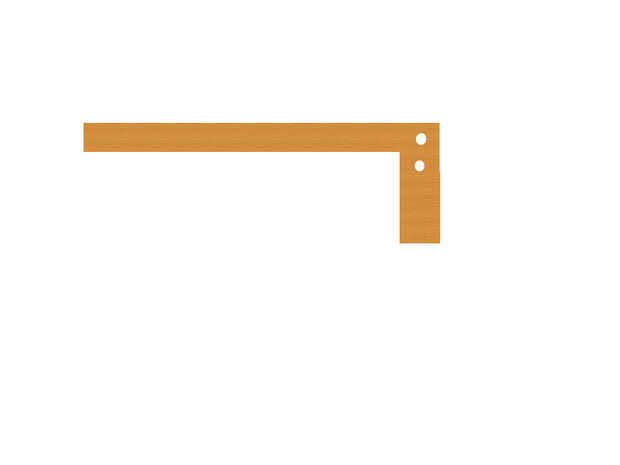 Ahora que queremos hacer el gatillo. Con la placa de madera, corte una forma de l sobre 20-25 cm de largo y el extremo más corto cerca de 8 cm largo y 2 cm de ancho. Taladro 2 agujeros de pequeños: la primera de ellas en la esquina y la segunda un poco más abajo. Los agujeros deben ser aproximadamente del tamaño de una uña.