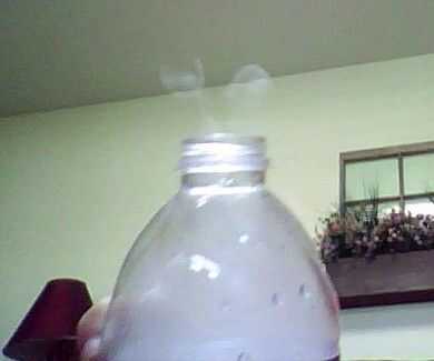 este es un truco muy fácil para hacer con una botella de agua vacía. Gire la botella tanto como puede, sostenga con una mano y luego usar el pulgar para rápidamente gire la tapa. La tapa debe volar y a presión vapor de agua se salen de la botella. Un