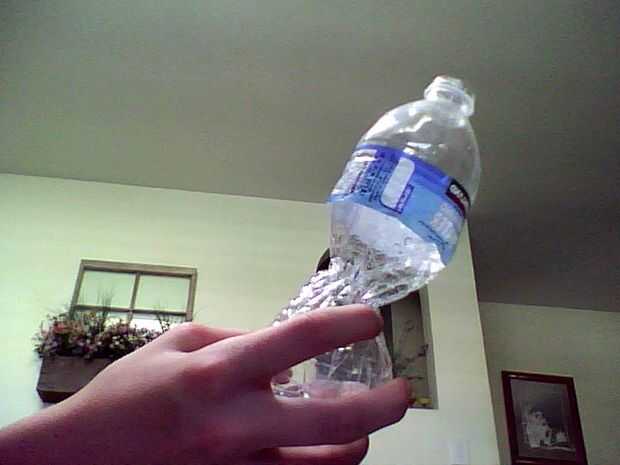 Si tienes algo que se parece a la imagen de abajo, todo lo que tienes que hacer es soplar la botella hacia arriba tanto como usted puede, encontrar la tapa y repita el proceso. Cada botella se puede obtener sobre 2-3 tomas, dependiendo de qué tan bien puede estallar la botella.