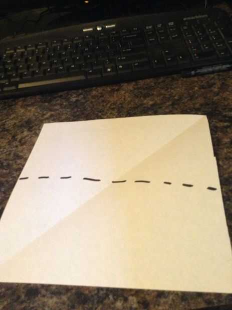 Paso 5: luego se corta exactamente la mitad por la Plaza (doblar el cuadrado por la mitad para obtener una justa medición