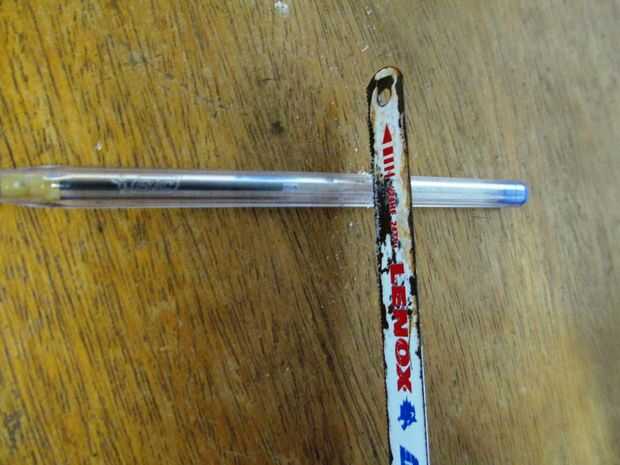 Para ocupar menos espacio, puede serrar un poco el lápiz sobre el tubo de tinta, y también cortar el tubo de tinta.