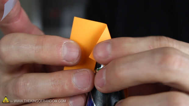 Recorte cuidadosamente a lo largo del interior borde de la marca y solo como que has hecho un dardo de papel mini que te ajuste perfectamente dentro del barril de la cerbatana.