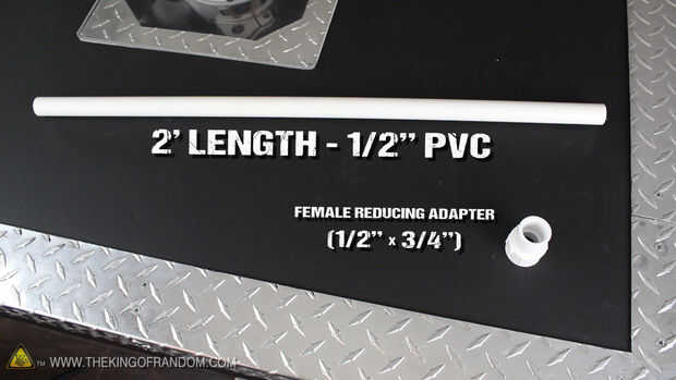 En la tienda de hardware usted puede recoger una longitud de 2 pies de tubo de PVC de 1/2" y un adaptador reductor. El adaptador hembra es 3/4" por un lado y reduce a un conector 1/2" resbalón en el otro.