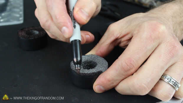 Utilizar alguna cinta aislante para reforzar la parte exterior del disco, entonces solo por aspecto, use un marcador negro para la espuma de color un poco más oscuro.