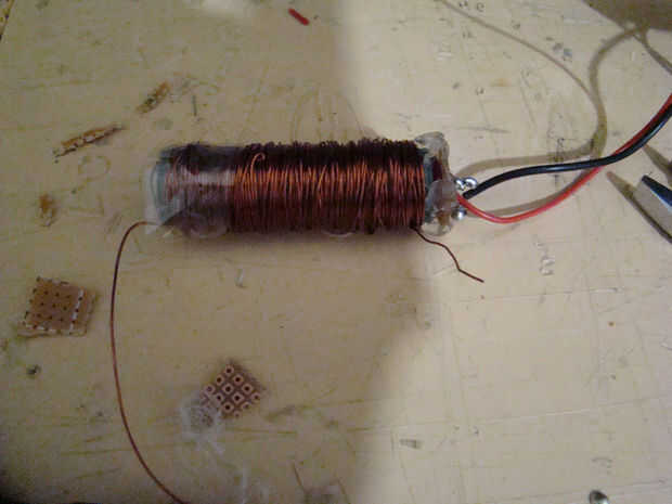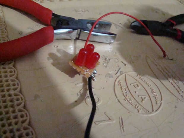 Tres LEDs en paralelo en un tablero del PWB de la soldadura y pegamento a un extremo del tubo y conecte el cable de la bobina a los cables de LEDs.