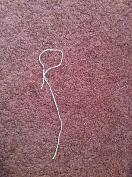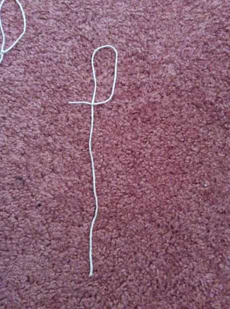 Llevar el extremo superior de la cadena a la derecha, luego tender el extremo de cadena en el resto de la cadena así que usted consigue un lazo, y debería verse como algo extraño al revés 9. (Ver fotos para más detalle). Luego atar el extremo del hilo alrededor de la cadena larga para que tenga un lazo.