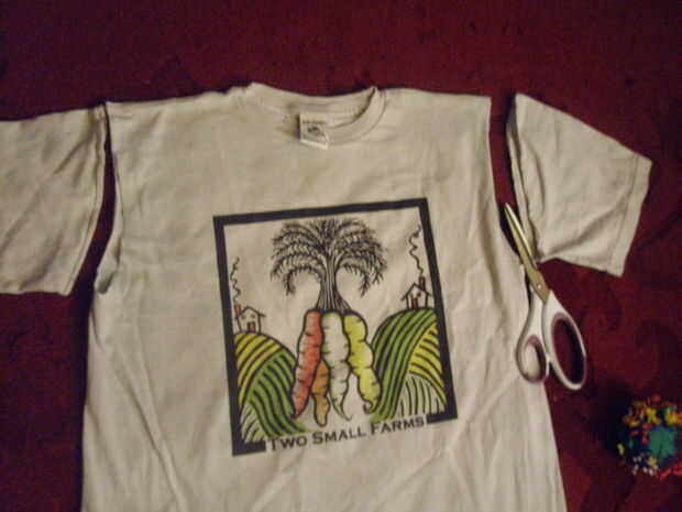 Tengo un montón de viejas camisetas poniendo alrededor, y cuando uno es demasiado pequeño corte el cuello y las mangas hacia fuera. Ser un nerd treehugging, tengo graves problemas tirar cualquier restos de tela, incluso mangas de la camiseta. Por sue