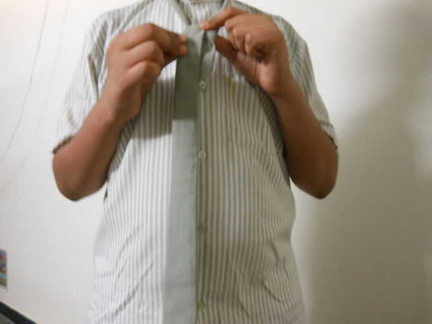 necesita algo de ropaPaso 1: Doblar al paño fold the 1. paño como fotos.Paso 2: Atar a paño take the 1. paño y atarlo con otro paño. ¡ Recuerde! atará a su cuello con 2. paño. (se verá como la última foto). ahora se puede utilizar.