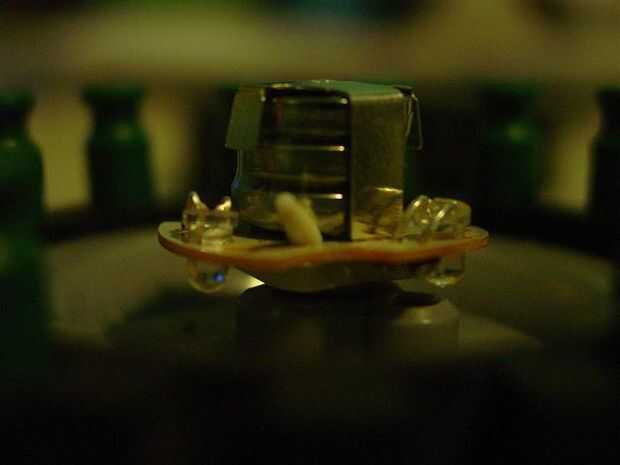 Usted quiere la parte de círculo del botón ir cara abajo en el agujero de la rueda.