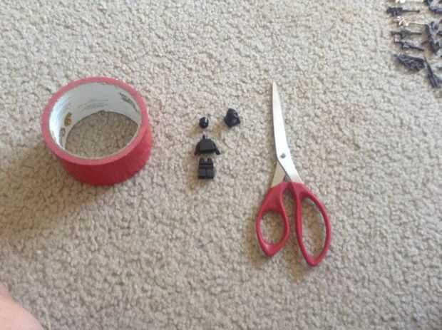 los materiales que necesitas son una figura de lego, cinta pato, tijeras y una campana de lego. Sólo tienes que seguir las fotos y creo que puede hacer que el chico solo me dicen que si necesitas algo