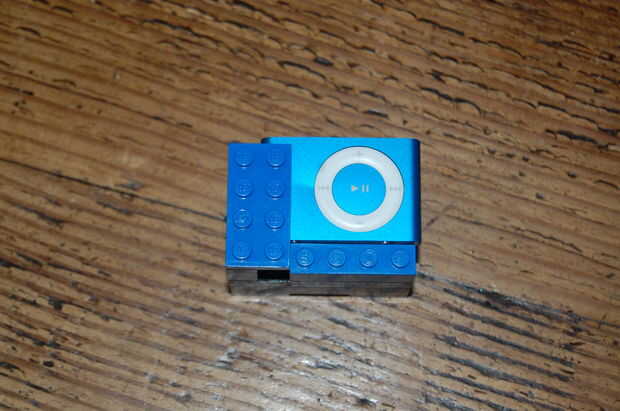 También puede modificar esto para ser compatible con iPods diferentes por pegar una pieza plana de 4 x 4 en la parte posterior de tu iPod y snaping los pedazos juntos.