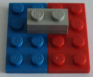 Es el momento de hacer el soporte para su minifig, esto se hace por apilar los dos 1 X 2 uno encima del otro y colocarlos en la ubicación en la imagen en la placa de 4 X 4.