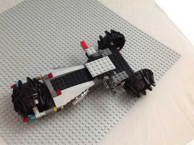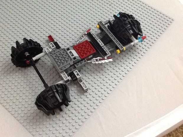 una serie de fotos mostrando mi vehículo personalizado de LEGO.  Cuenta con un 26 x 6 x 1 marco de postes, impulsión del engranaje de gusano y las enormes ruedas de mi cargador del extremo delantero 8265 que tan capaz en la conducción sobre los objet