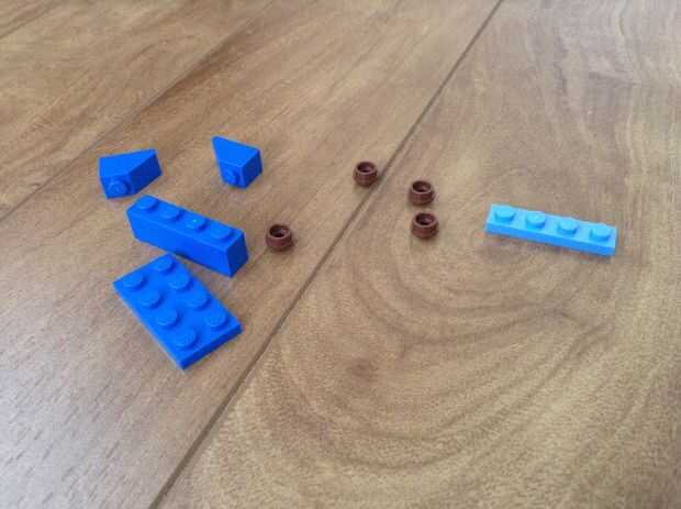 Las piezas que vas a necesitar es ladrillo de 4 x 2 azul. Ladrillo de 2 x 4. 4 postes de madera marrón. 2 ladrillo de 1 x 2 rampa. Y tall.that de ladrillo de 1 x 4 que vas a necesitar seguir sólo las instrucciones.