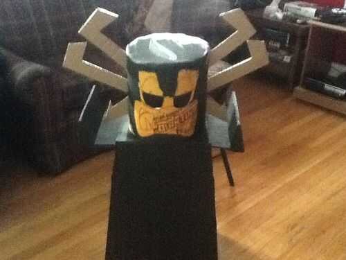Tomé una hoja de espuma de embarcaciones grandes y ponerlo sobre la parte superior de la cabeza le dan una gorra y plano. Si realmente quisiera, podría volver a utilizar espuma de poliestireno e incluso hacer el pequeño círculo en la parte superior. I cortar varios pedazos de cabeza de cartón y había pegado en así.