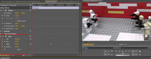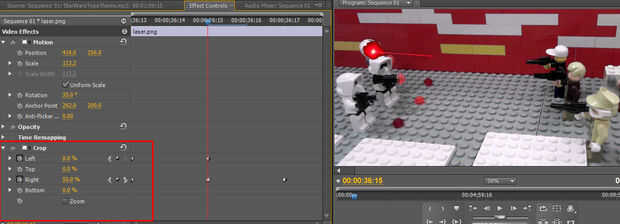 After Effects se utilizará generalmente para esto, pero si no tienes acceso a ella, se puede hacer en estreno así. El láser fue retocado y entonces importado en Premiere.