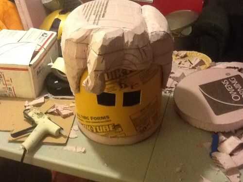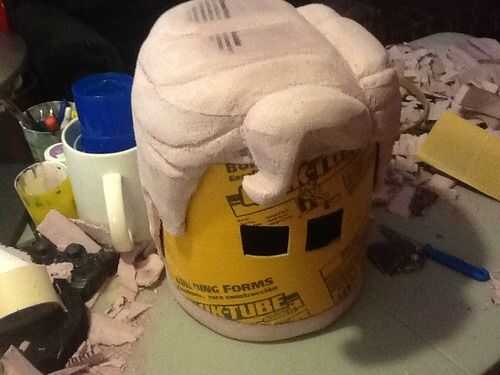 Usando la espuma de poliestireno, pegué unos 10 apilados uno encima del otro. Usé un cuchillo para bajar la forma básica.