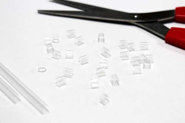 Corte los popotes en trozos pequeños, alrededor de 1/4 pulgada de espesor y guárdelos en la bolsa de plástico de sandwich.