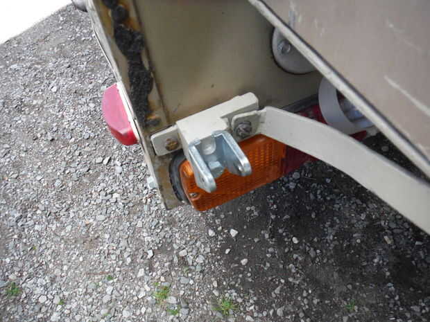 La teoría es que los actuadores son todas apuntando hacia abajo y empujar desde la parte posterior, el extremo móvil del actuador se fija realmente en su lugar como se muestra aquí, lugar donde se conecta con este soporte MB1 en las 4 esquinas de la caravana.