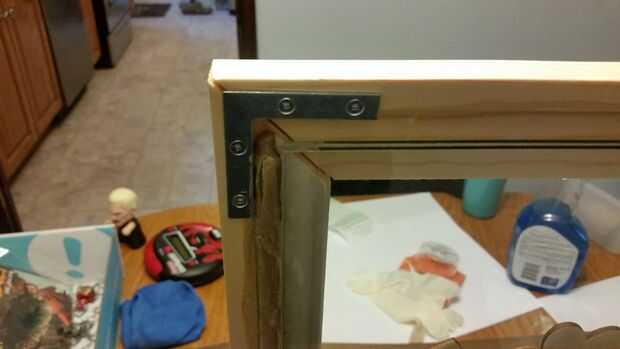 Los soportes de esquina son como se muestra en la imagen. Deben ser pequeñas y los tornillos no pueden ser demasiado grandes para partir la madera.