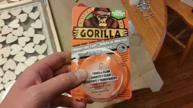 La espuma, cinta de montaje se puede encontrar en ferreterías. El que se utiliza aquí para enlazar las dos piezas de vidrio es una cinta de montaje claro que es aproximadamente de 1mm de espesor (marca de fábrica del gorila). Unión de la madera con el vidrio hemos utilizado una espuma regular cinta de montaje (de pato).