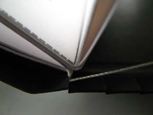 El segundo folleto entre la última página de su primer libro y la tapa posterior de la horquilla. Asegúrese de que el segundo libro está abierto en el centro y enrollar la cadena el centro como envuelve el primer librito.